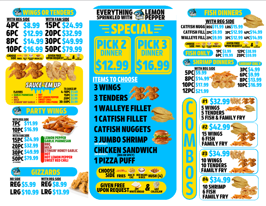 No matter your cravings, Sharks Fish & Chicken offers a delicious and diverse menu that will leave you satisfied.