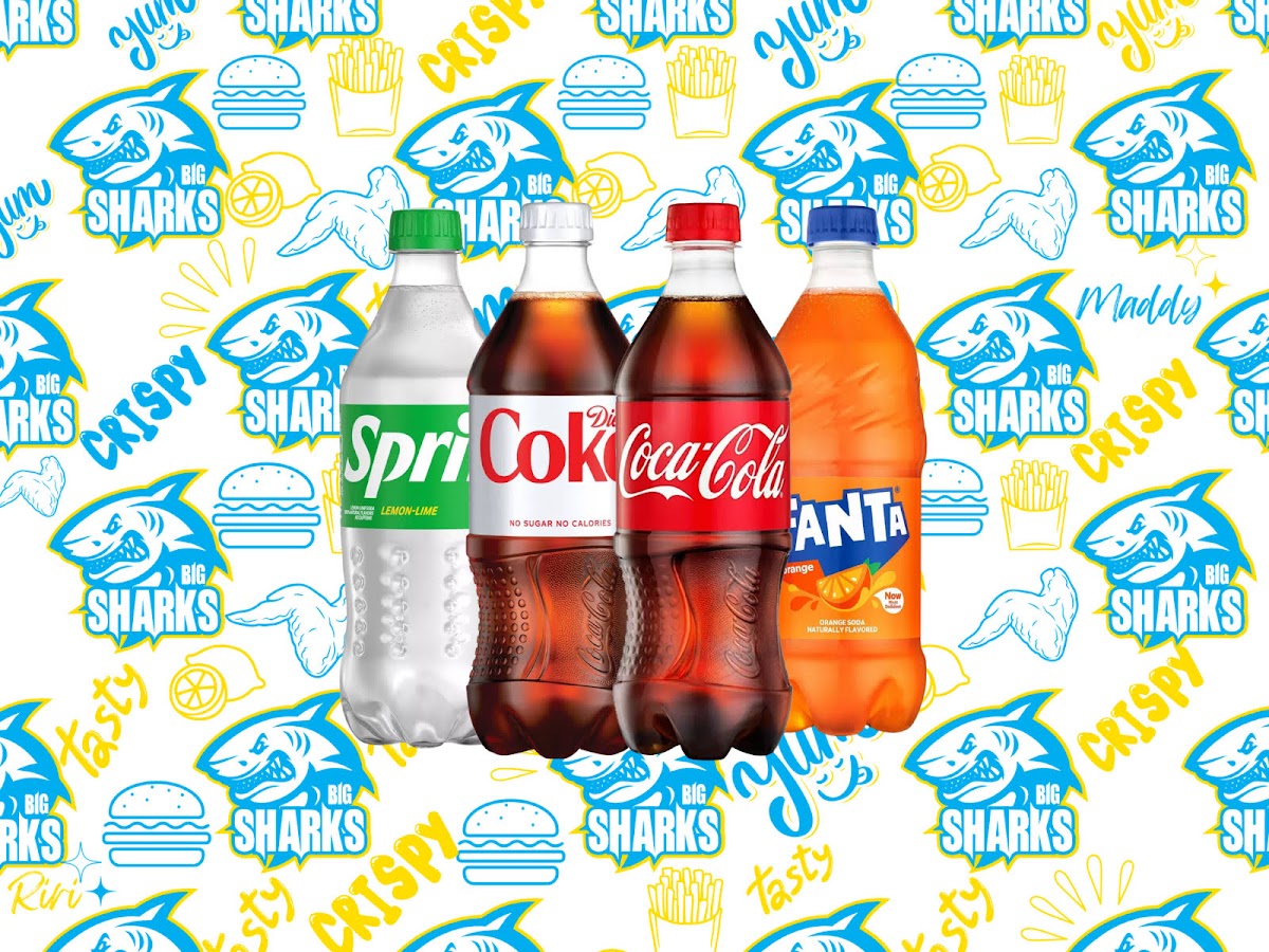 24 oz fountain drink with your choice of coke products: Coke, Cherry Coke, Diet Coke, Coke *Zero*, Sprite, Pibb Extra, Mellow Yellow, Fanta Orange, Lemonade, Sweet Tea, BLUE Powerade, & HI-C Fruit Punch